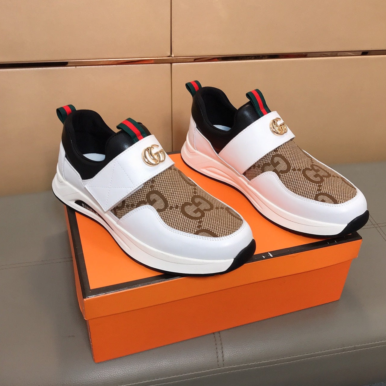 GG Men's Slip on White Brown Cowhide Canvas 530404