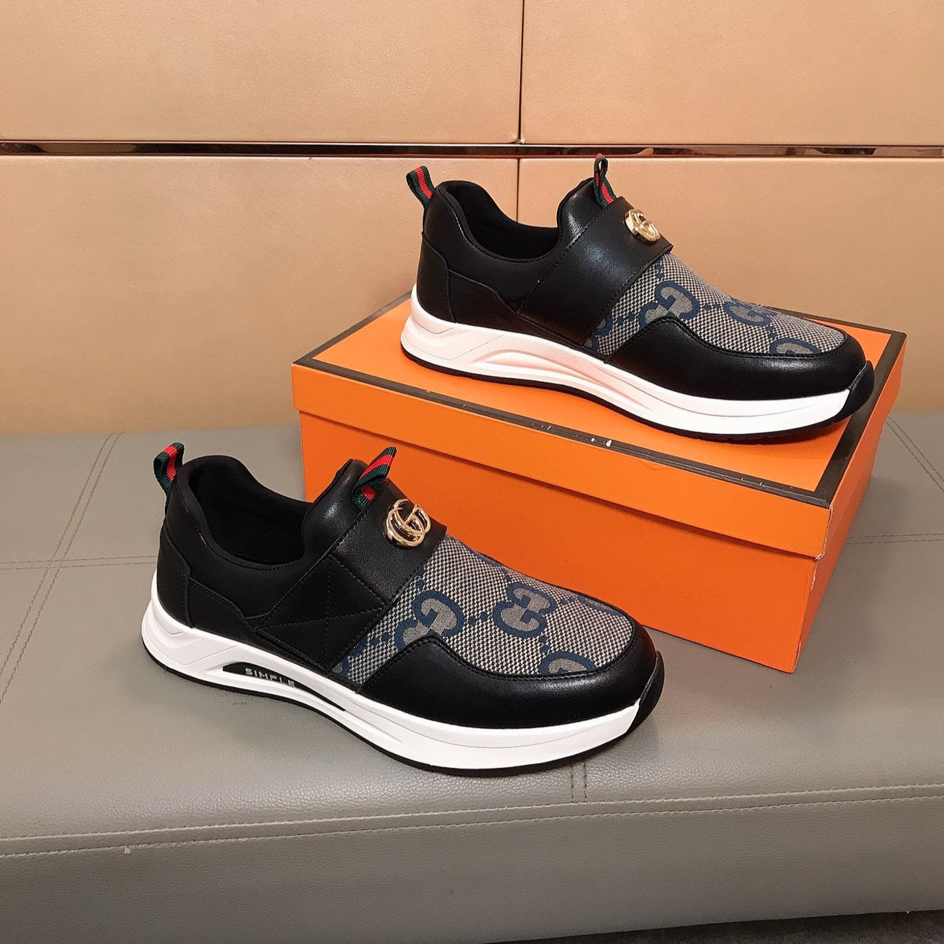 GG Men's Slip on Black Brown Cowhide Canvas 530402