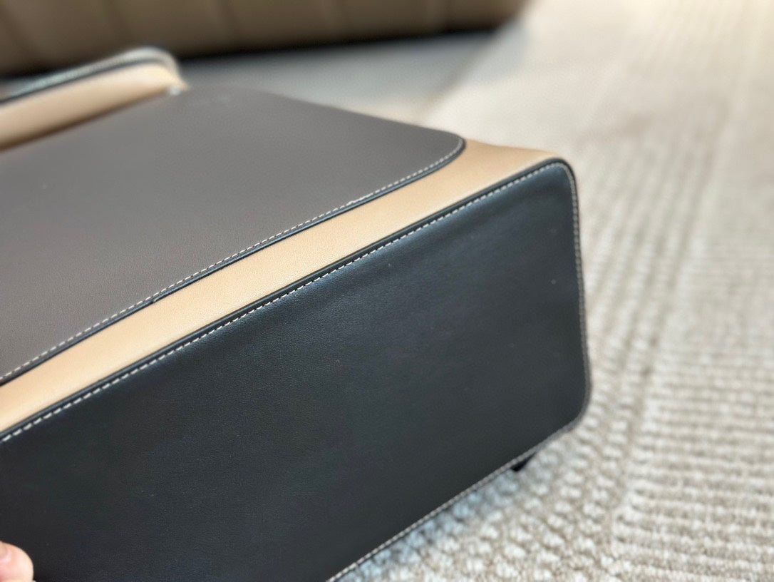 LOE GOYA BACKPACK 40 IN BLACK MIX BEIGE GRAINED CALFSKIN