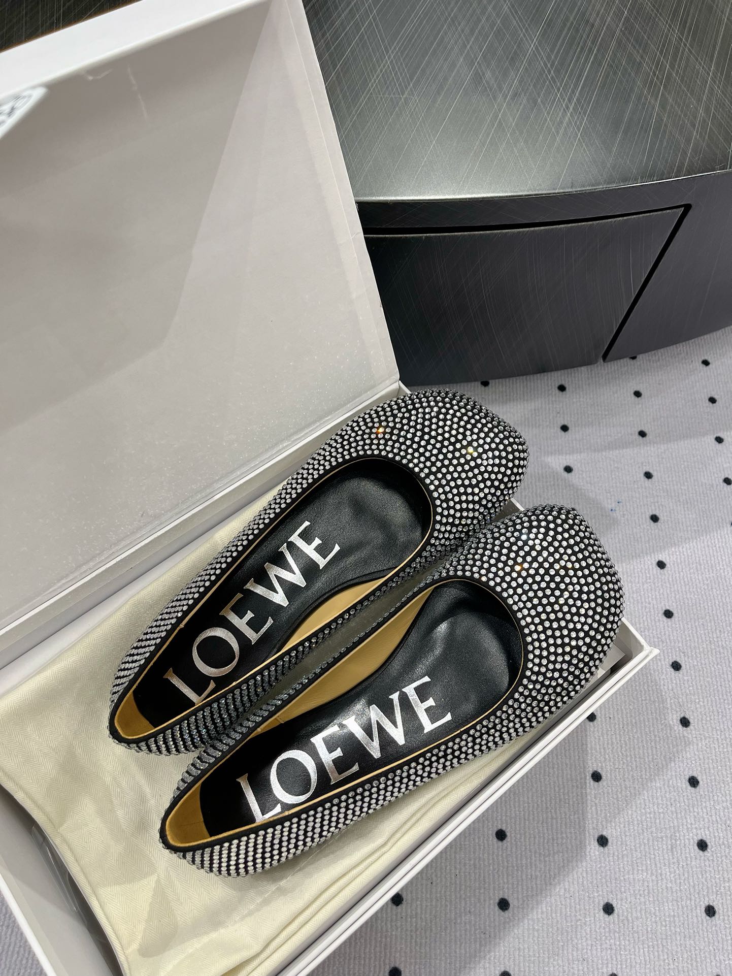 Toy ballerina in suede and allover rhinestones black