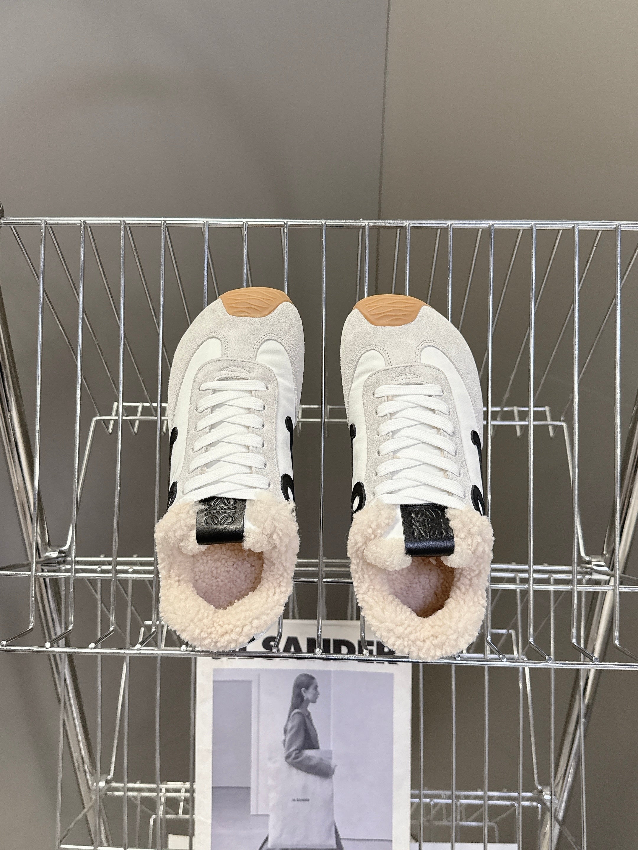 Loewe 2025 Fur Slipper Beige Black Wool 556015