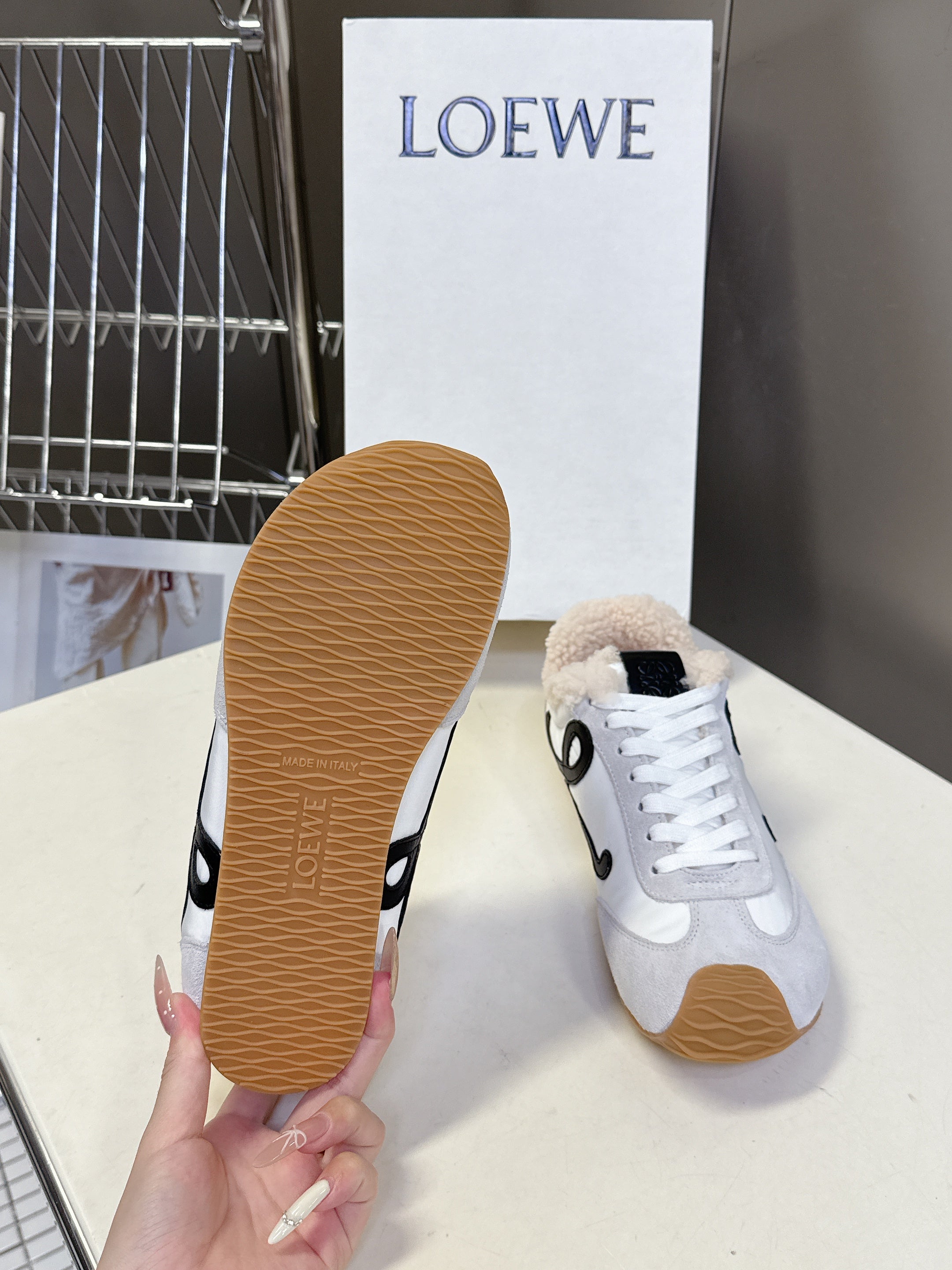 Loewe 2025 Fur Slipper White Black Wool 556014