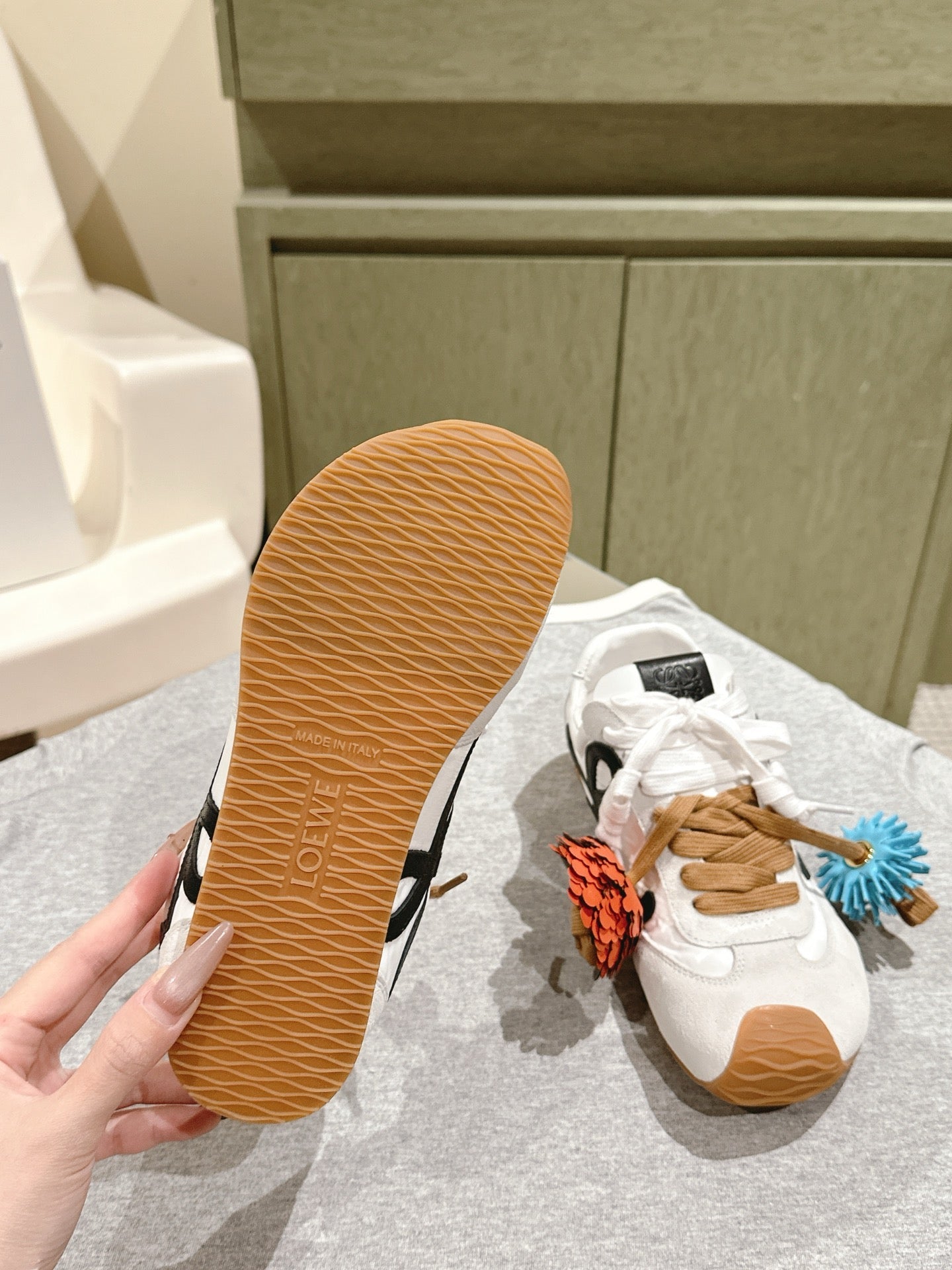 Loewe 2025 Paula's Ibiza Flow Runner Sneaker Ivory Blue Suede Leather 556048