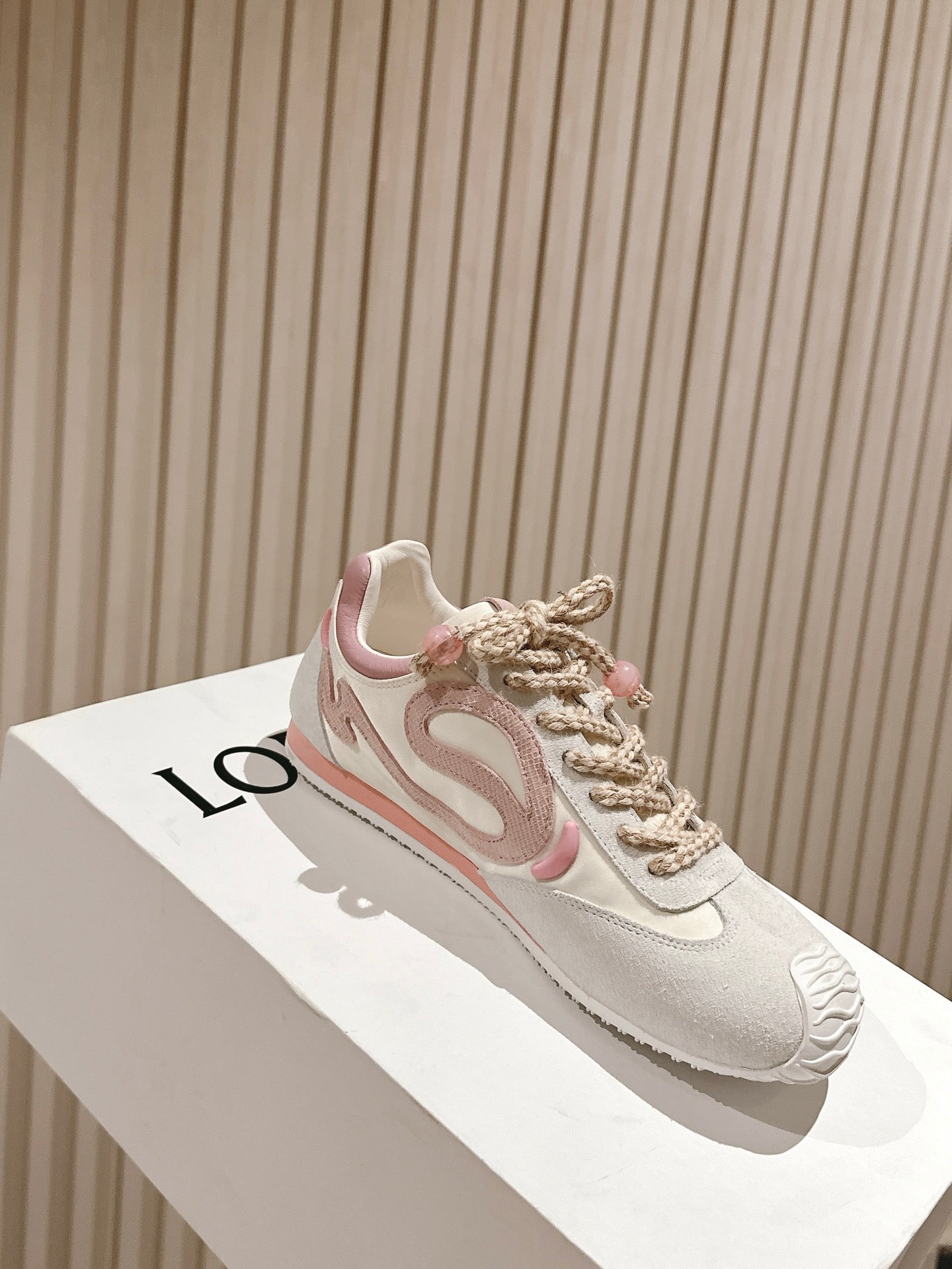 Loewe 2025 Paula's Ibiza Flow Runner Sneaker Ivory Pink Suede Leather 556047