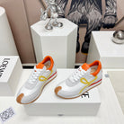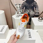 FLOW RUNNER SNEAKER IN PALE GRAY MIX VIVID ORANGE SUEDE AND SHEEPSKIN