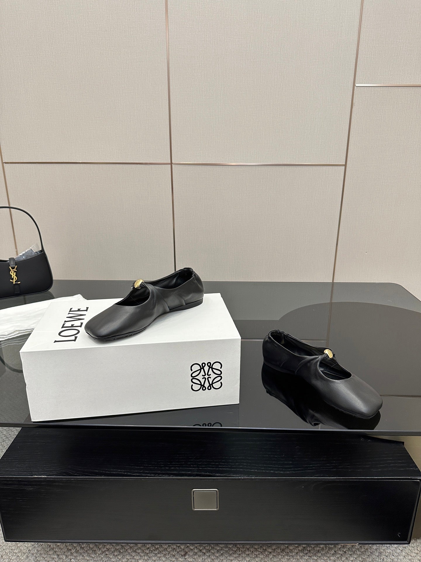 Loewe 25 Pebble Ballet Flats Black Calfskin