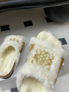 Loewe x Birkenstock slippers white tan further