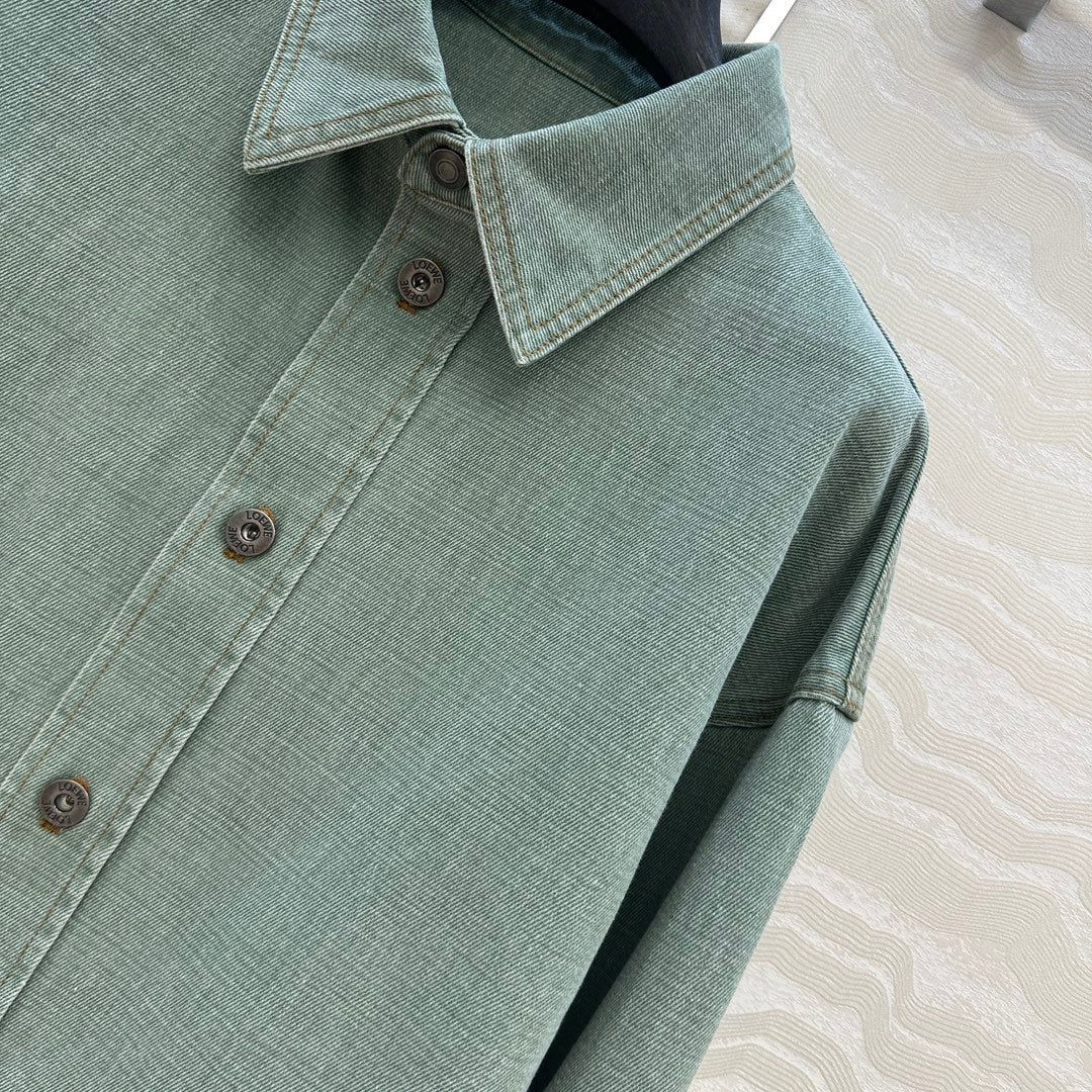 Loewe A-line Denim Shirt Jacket Green Cotton