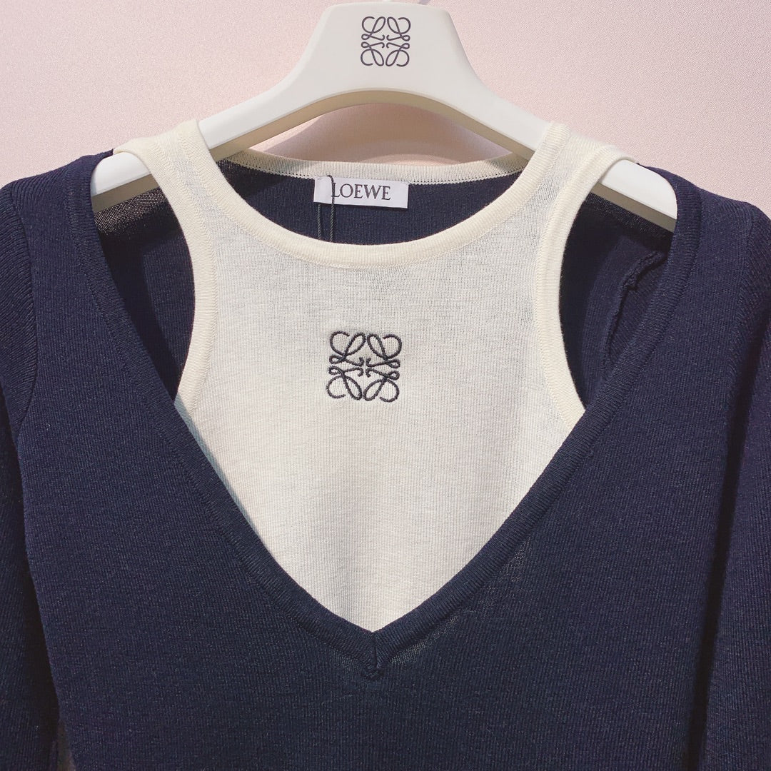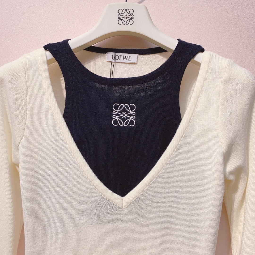 Loewe 25 Sleeveless Dress Blue mix White Cotton Polyamide