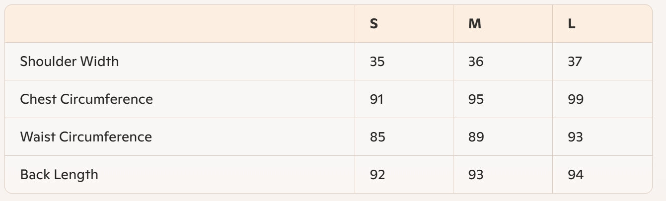 - Size: S, M, L