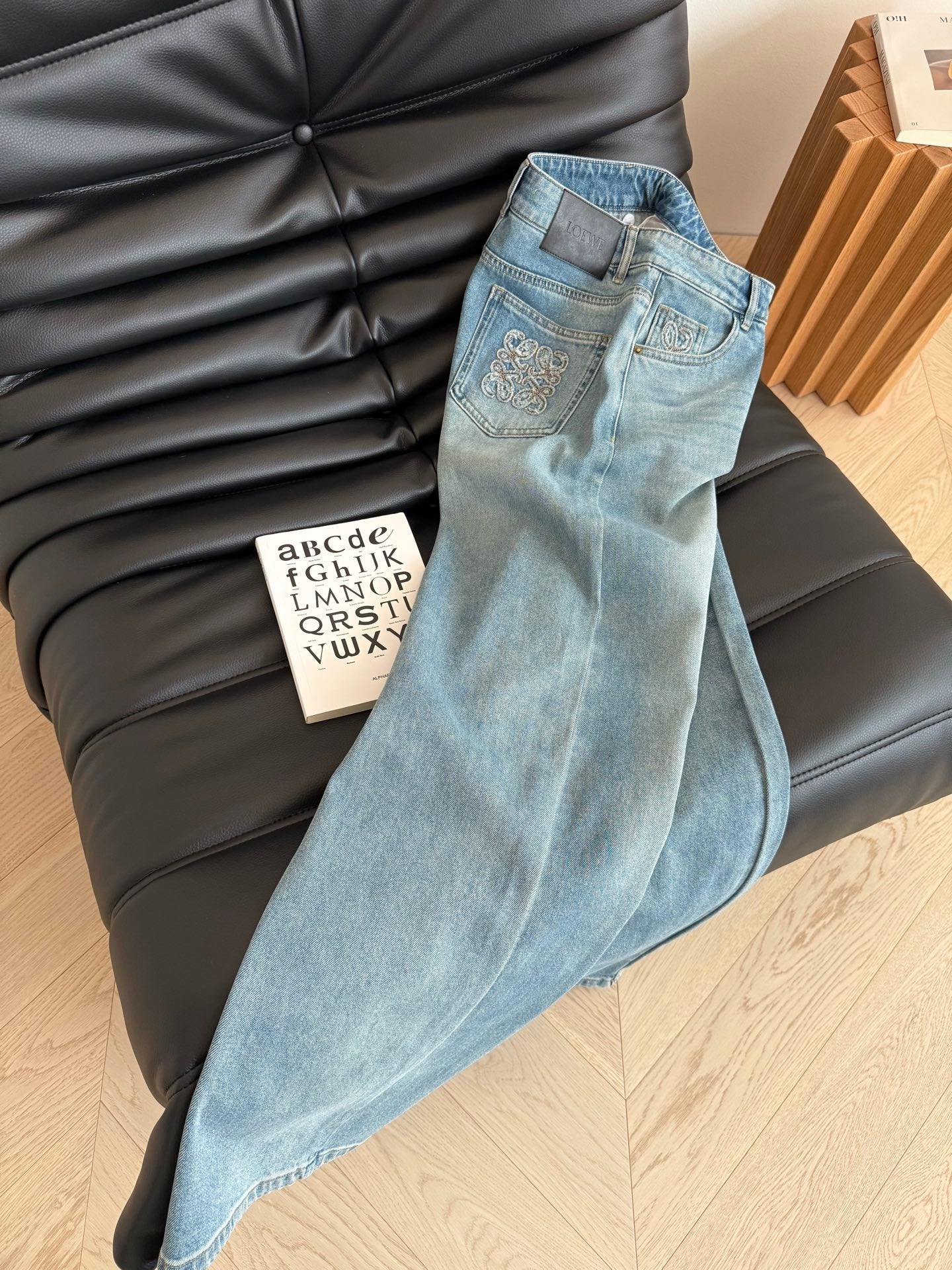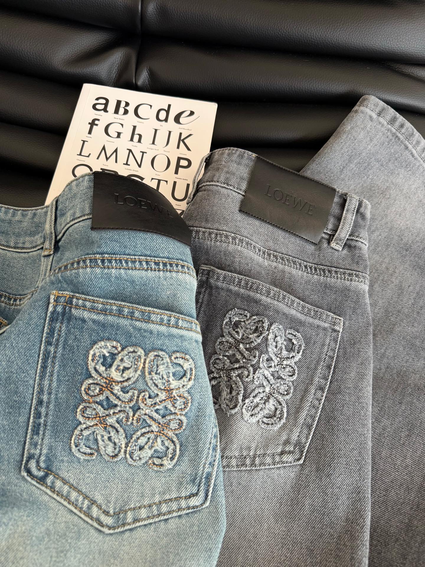 Loewe 25 Embroidered Straight Jeans Denim Cotton