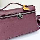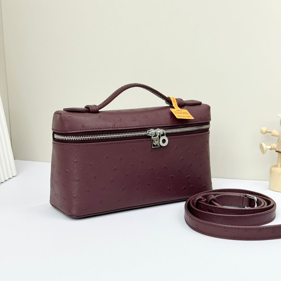 LP Extra Bag 19cm Ostrich Pattern Burgundy Calfskin Silver Hardware
