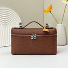LP Extra Bag 19cm Ostrich Pattern Chestnut Brown Calfskin Silver Hardware