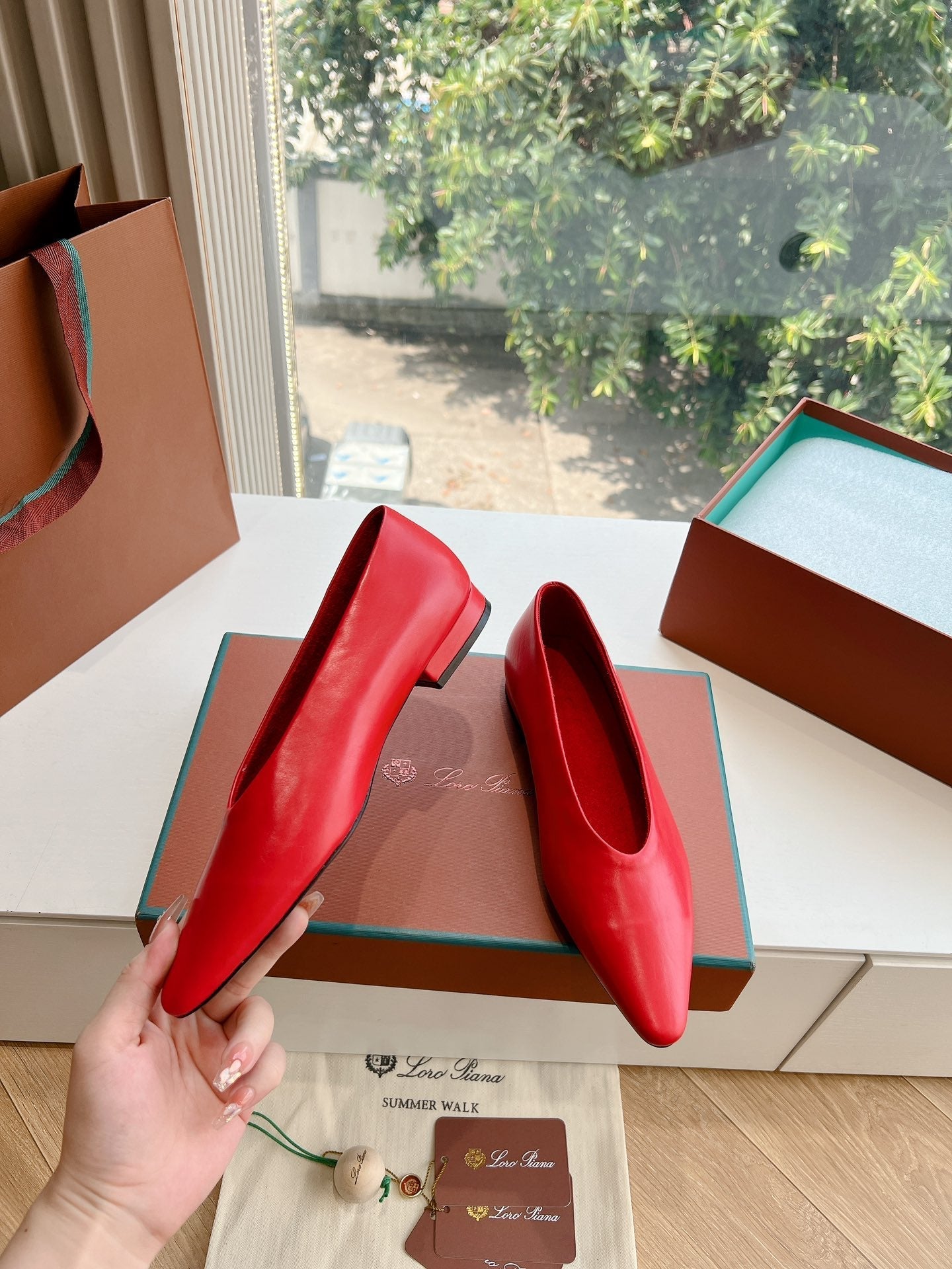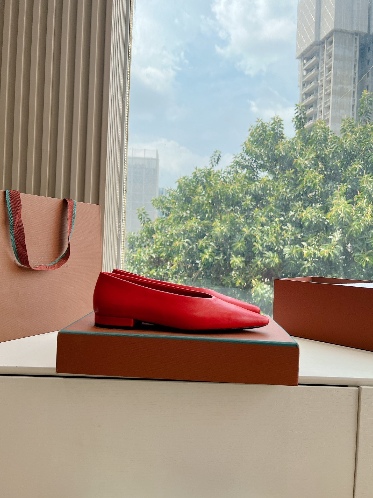 rebecca ballerina flat red calfskin