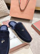 LP Charms Walk Babouche Loafer Space Blue Suede With Rabbit Fur Lining 206227