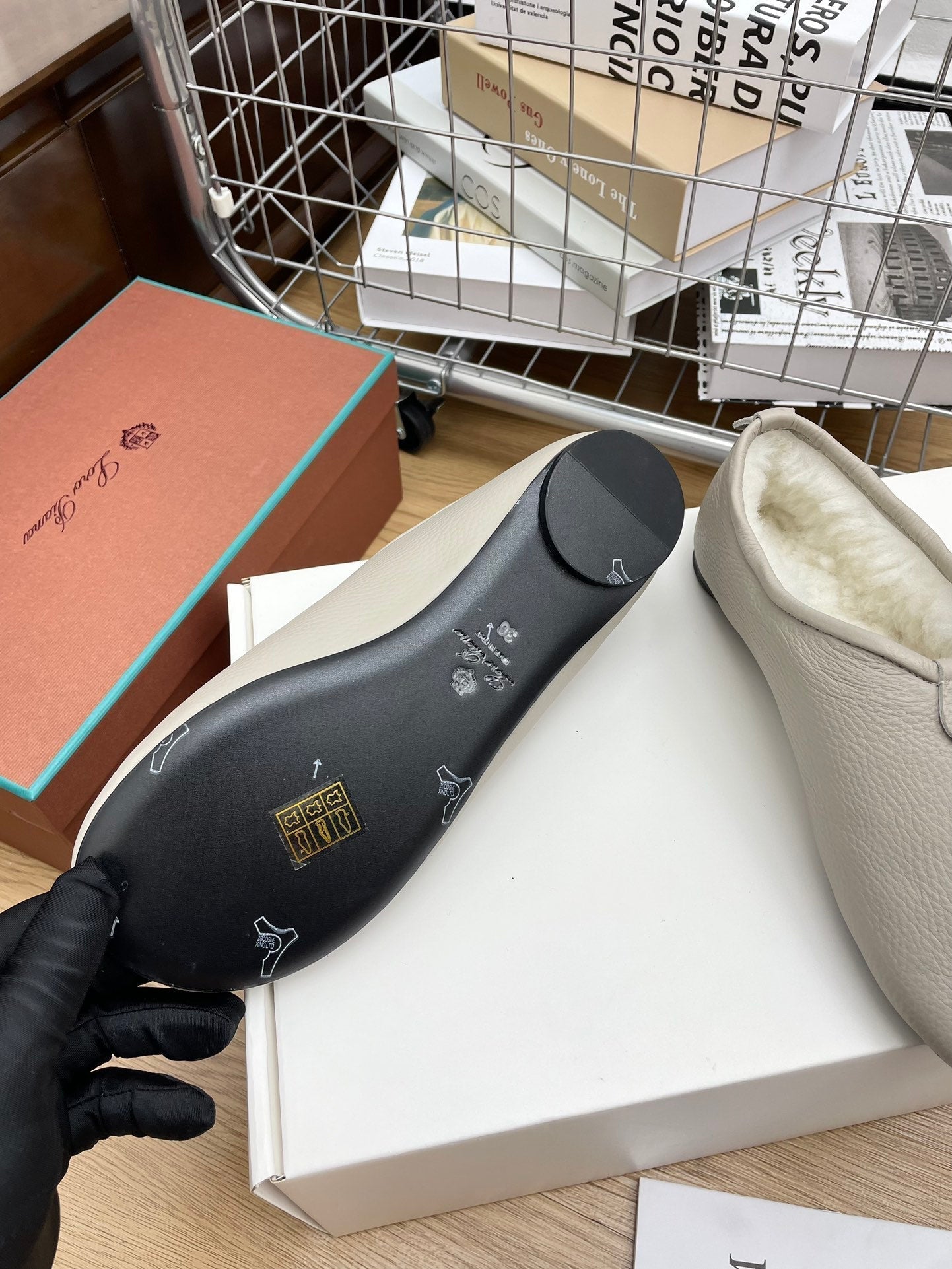 LP Cocooning Floaty Flat Grey White Wool Fleece Lining And Cowhide 989987