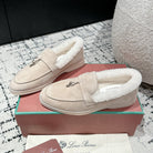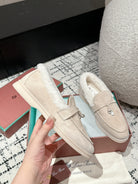 LP Summer Charms Walk Loafers In Light Beige Mix White Suede With Rabbit Fur Lining 985650