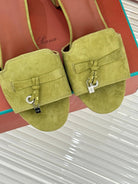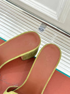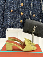 HIGH HEELS IN MOSS YELLOW SUEDE AND LAMBSKIN