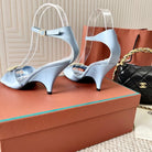 HIGH HEELS SANDALS 80 MM IN PASTEL BLUE SATIN MIX SUEDE
