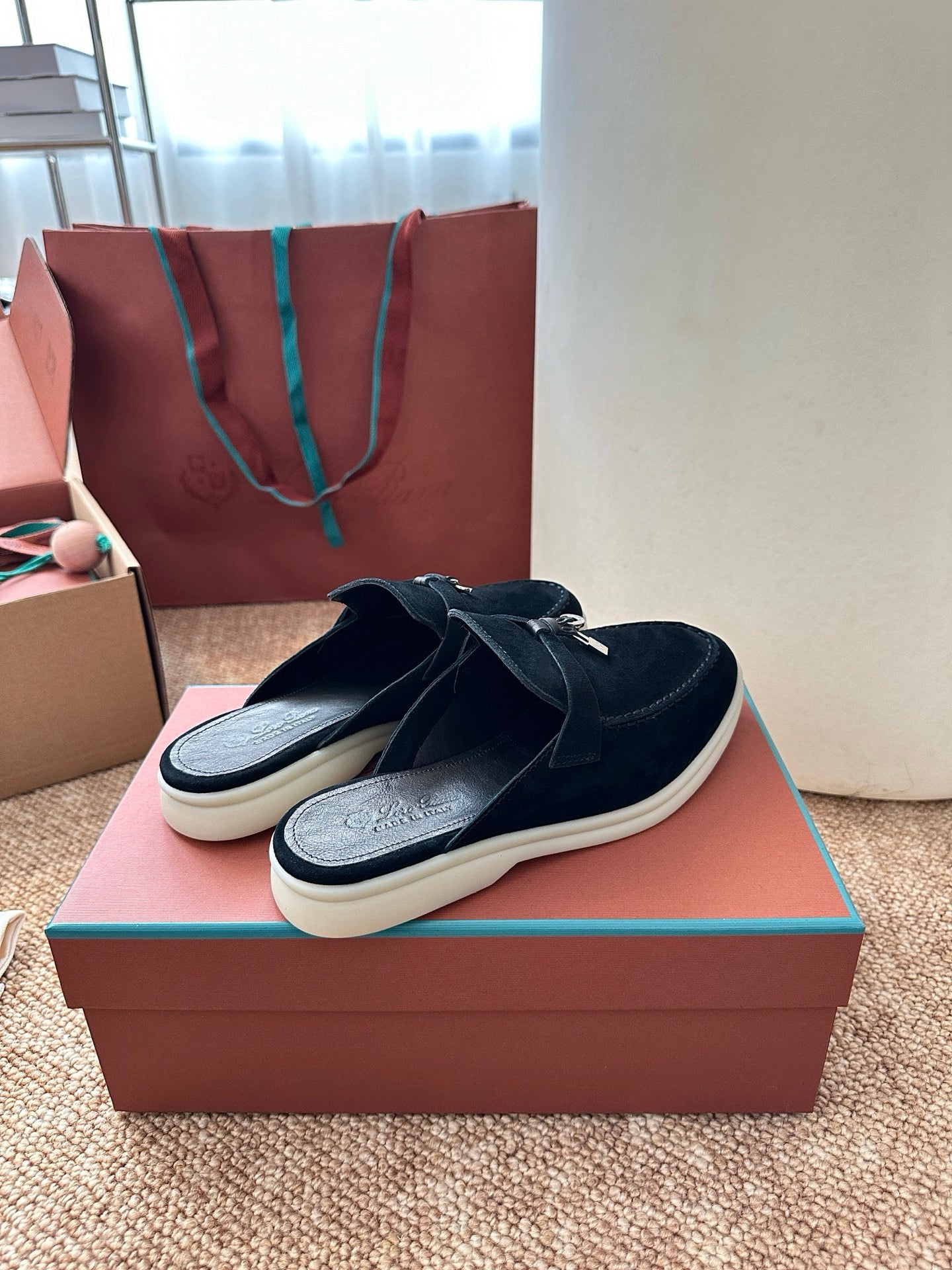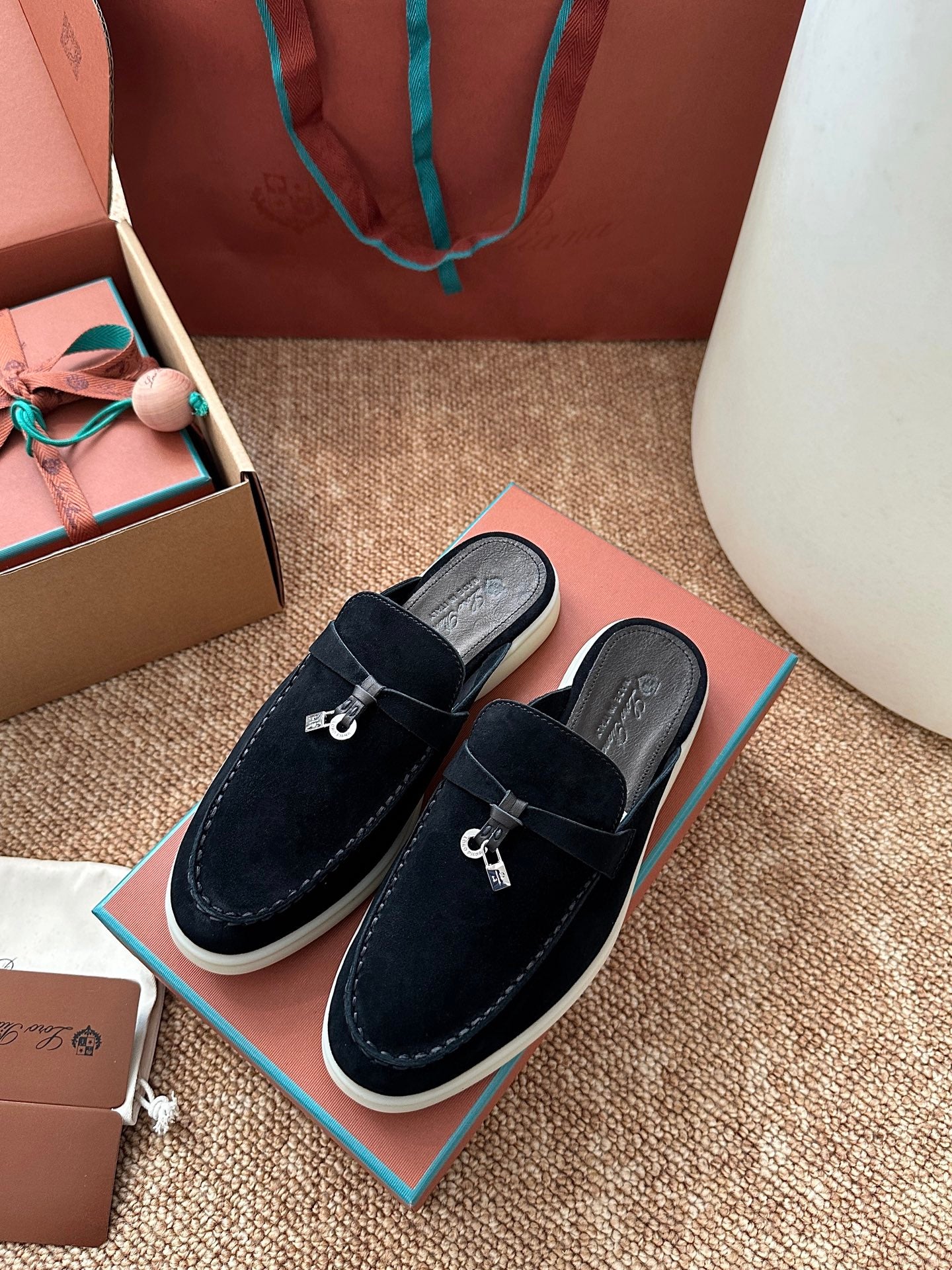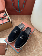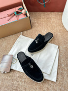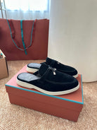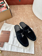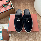 Loro Piana Charms Walk Flat Mules Black Suede 623558