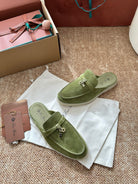 Loro Piana Charms Walk Flat Mules Olive Green Suede 623441