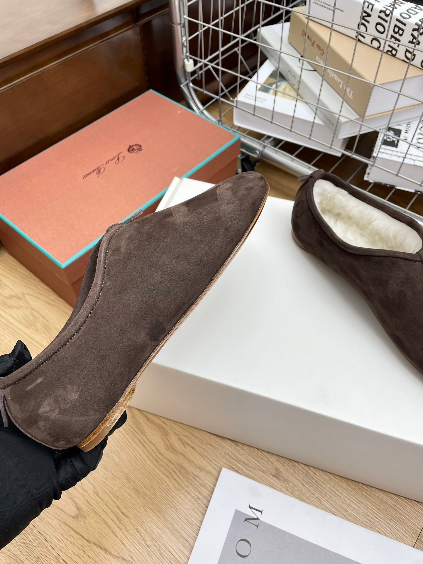 LP Cocooning Floaty Flat Earth Brown Wool Fleece Lining And Suede 989993