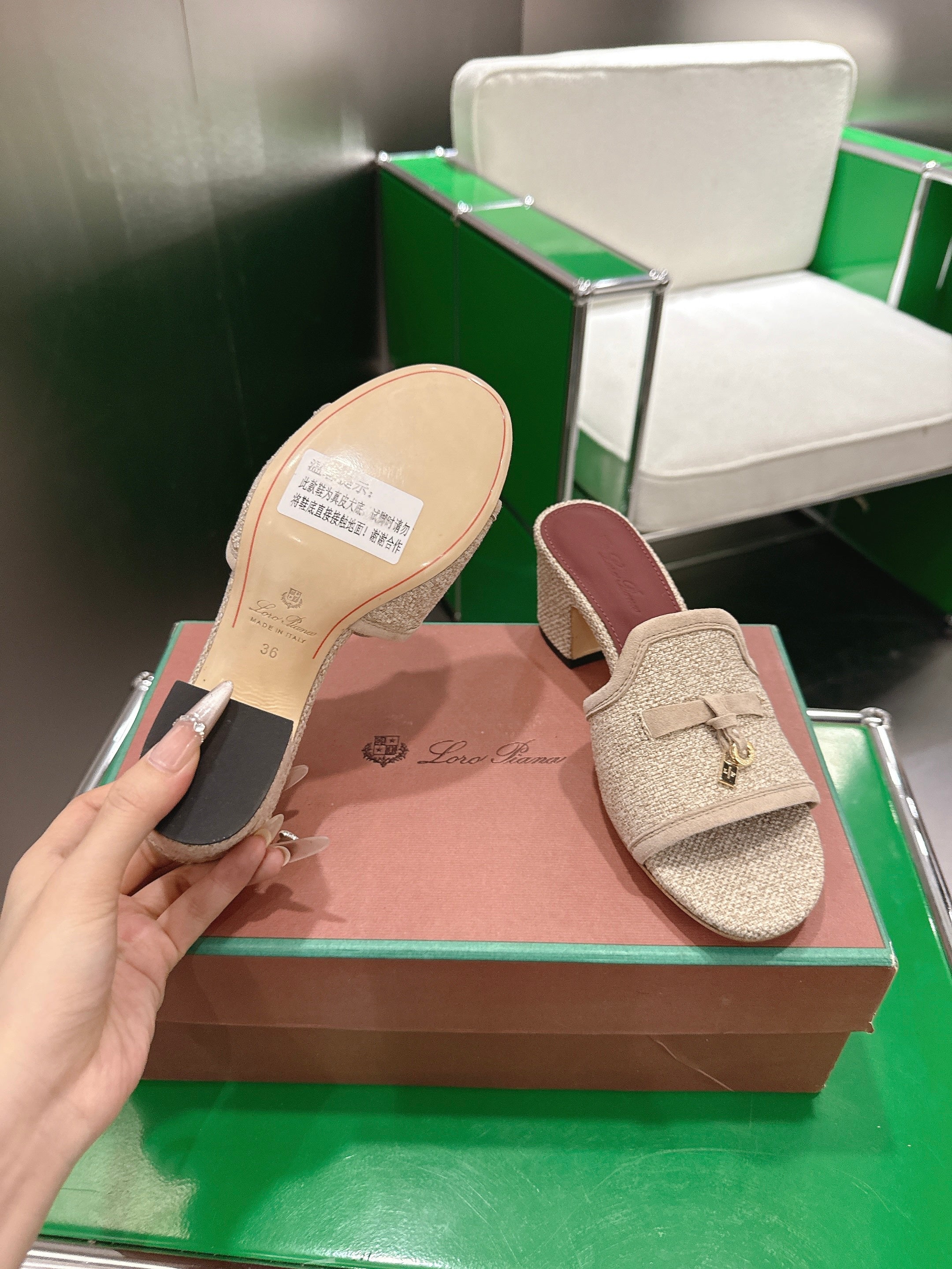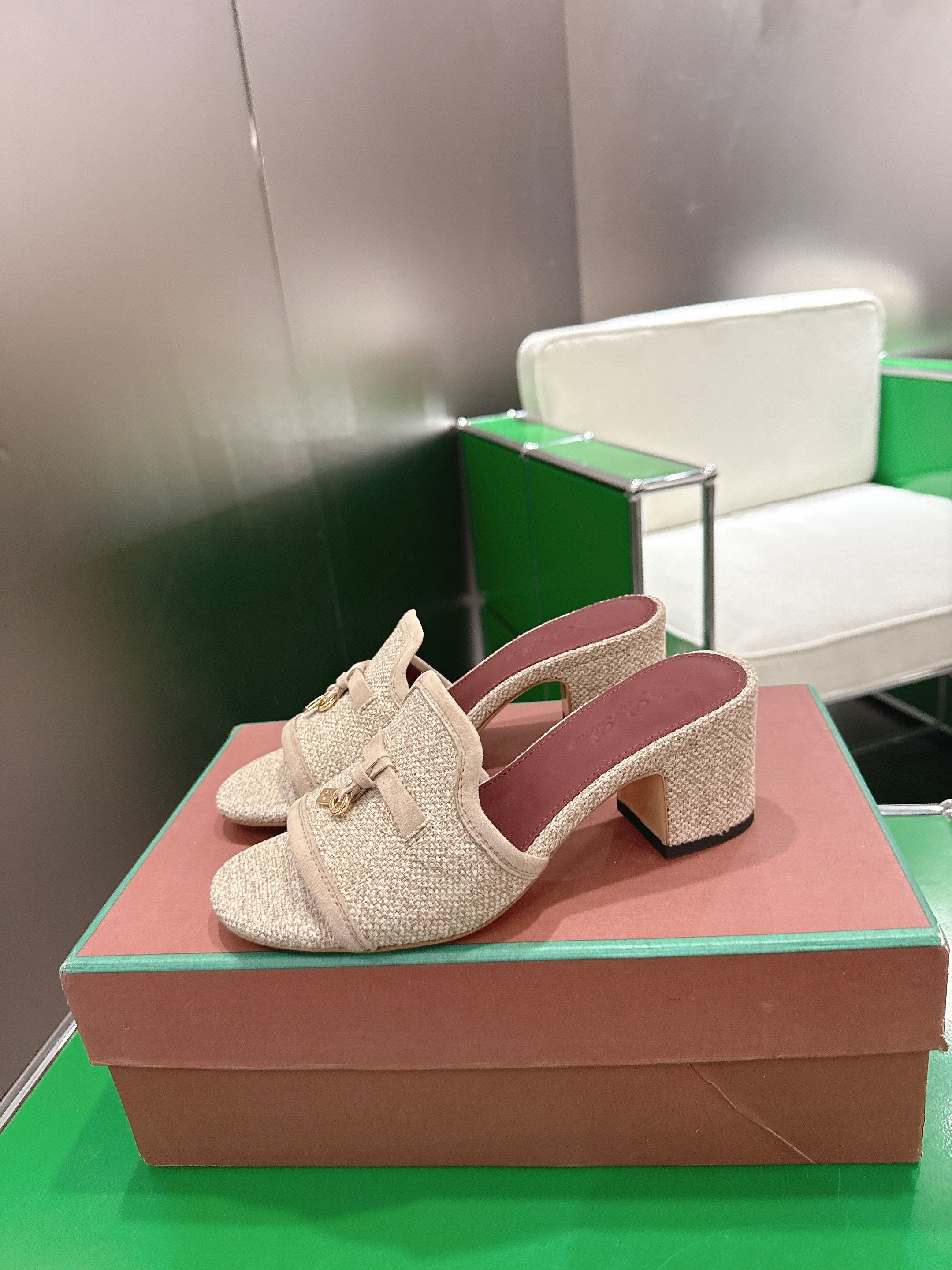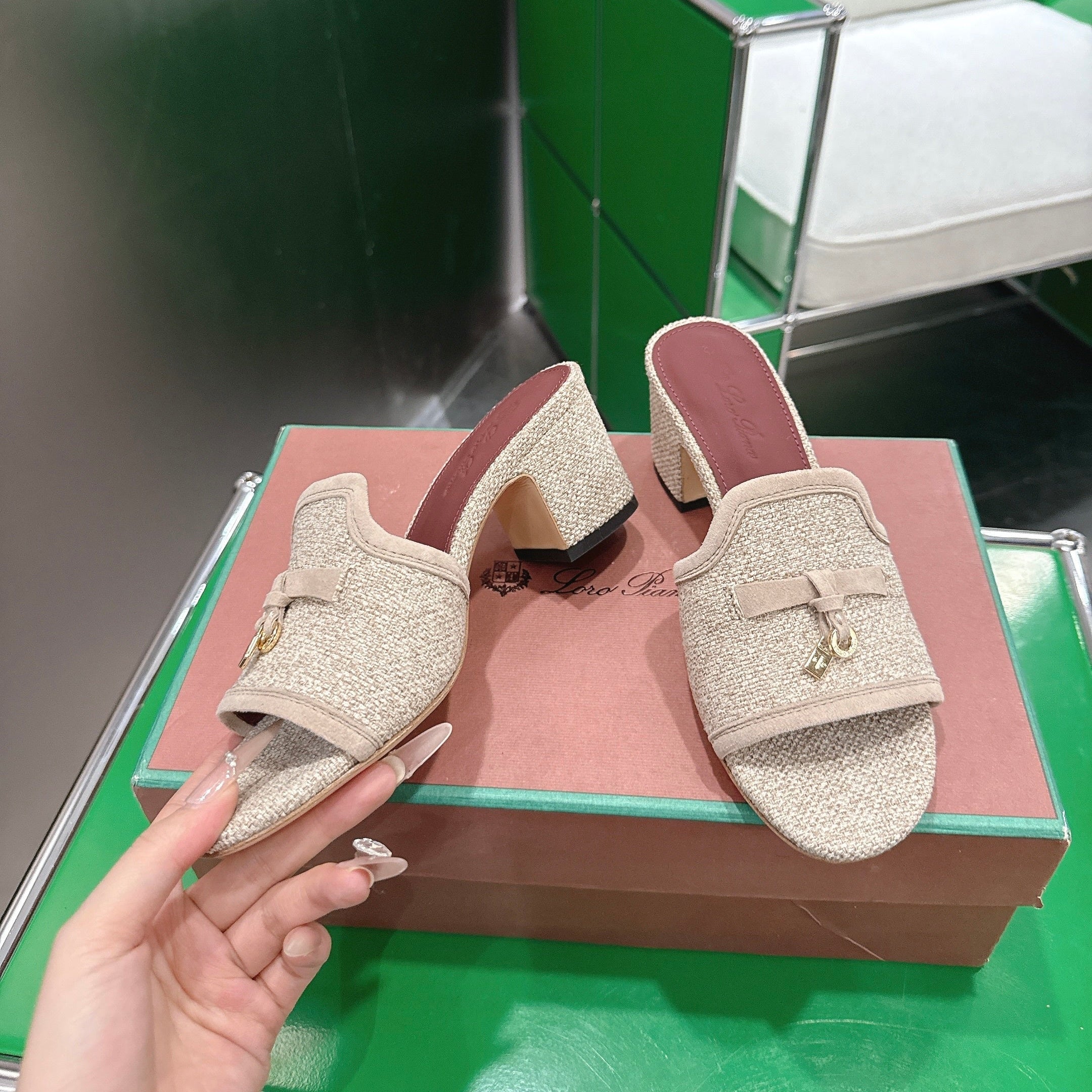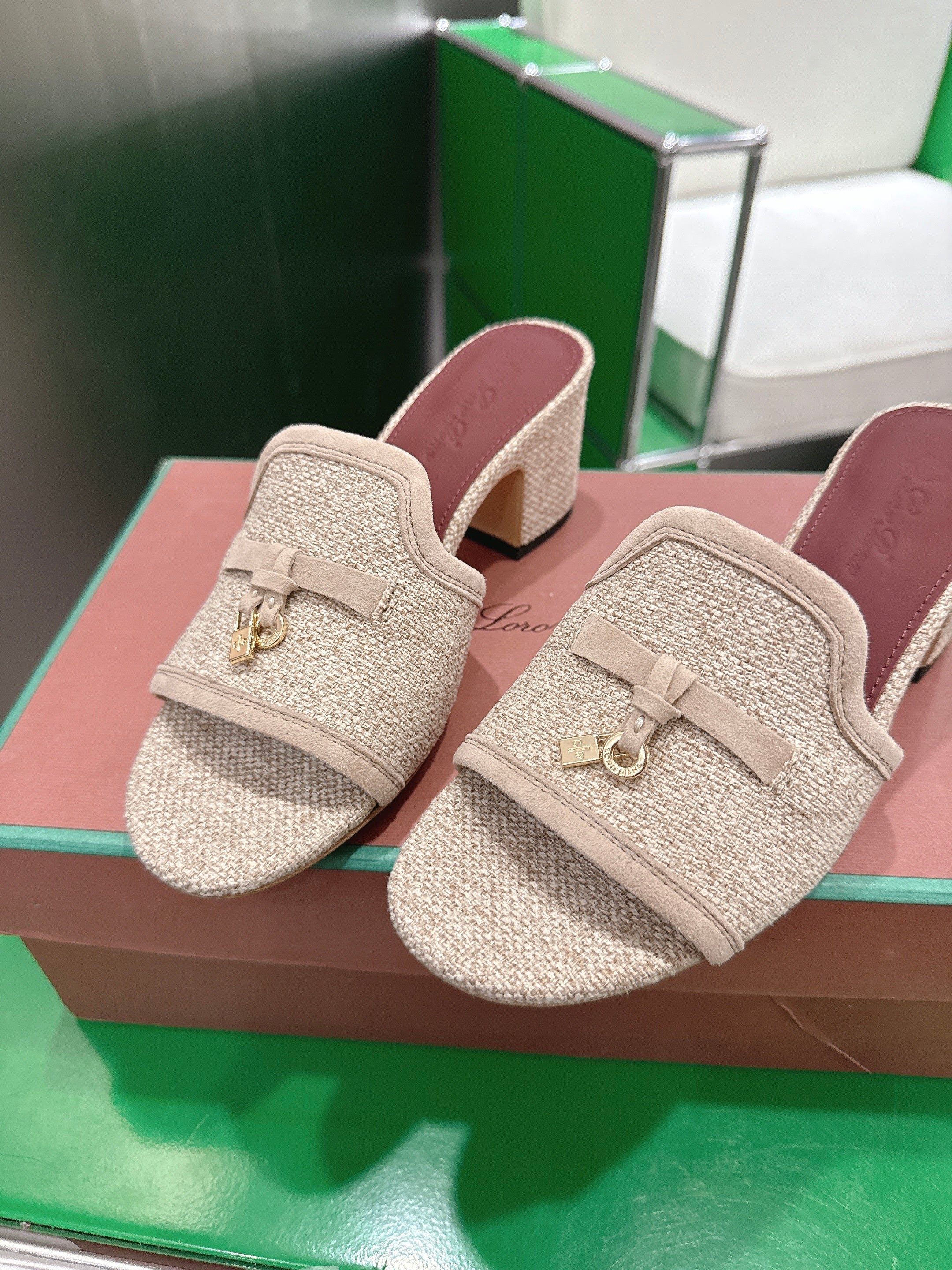LP Summer Charm Mule 5.5cm Beige Tweed Leather 632141