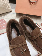 LP Summer Charms Walk Loafers Bottele Brown Suede With Rabbit Fur Lining 206262