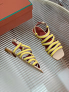 Sprightly Charms Sandal Piana Slippers Beige Yellow Brown Calfskin