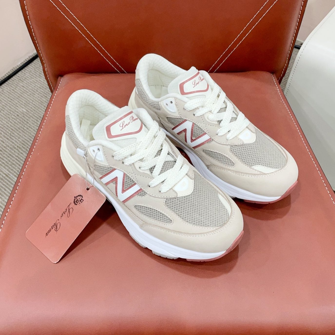 LP x NB 990v6 Sneaker 45mm white grey dark pink calfskin and mesh fabric