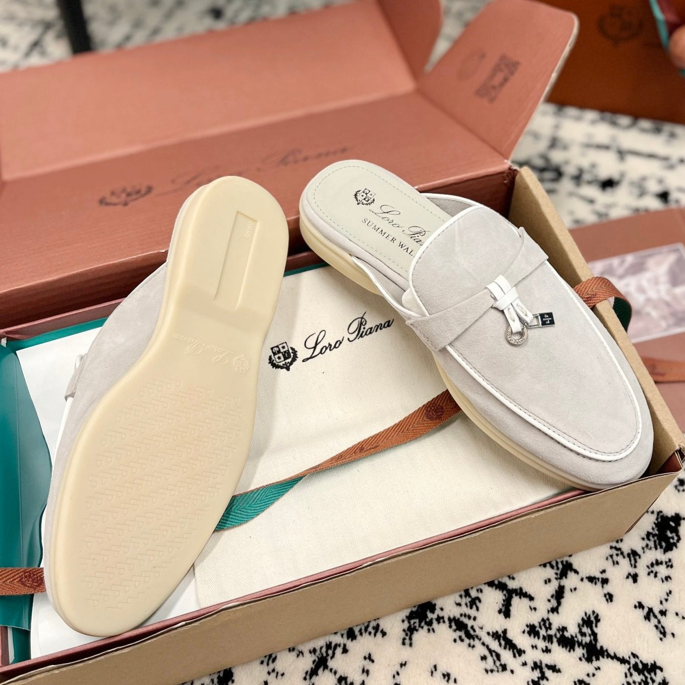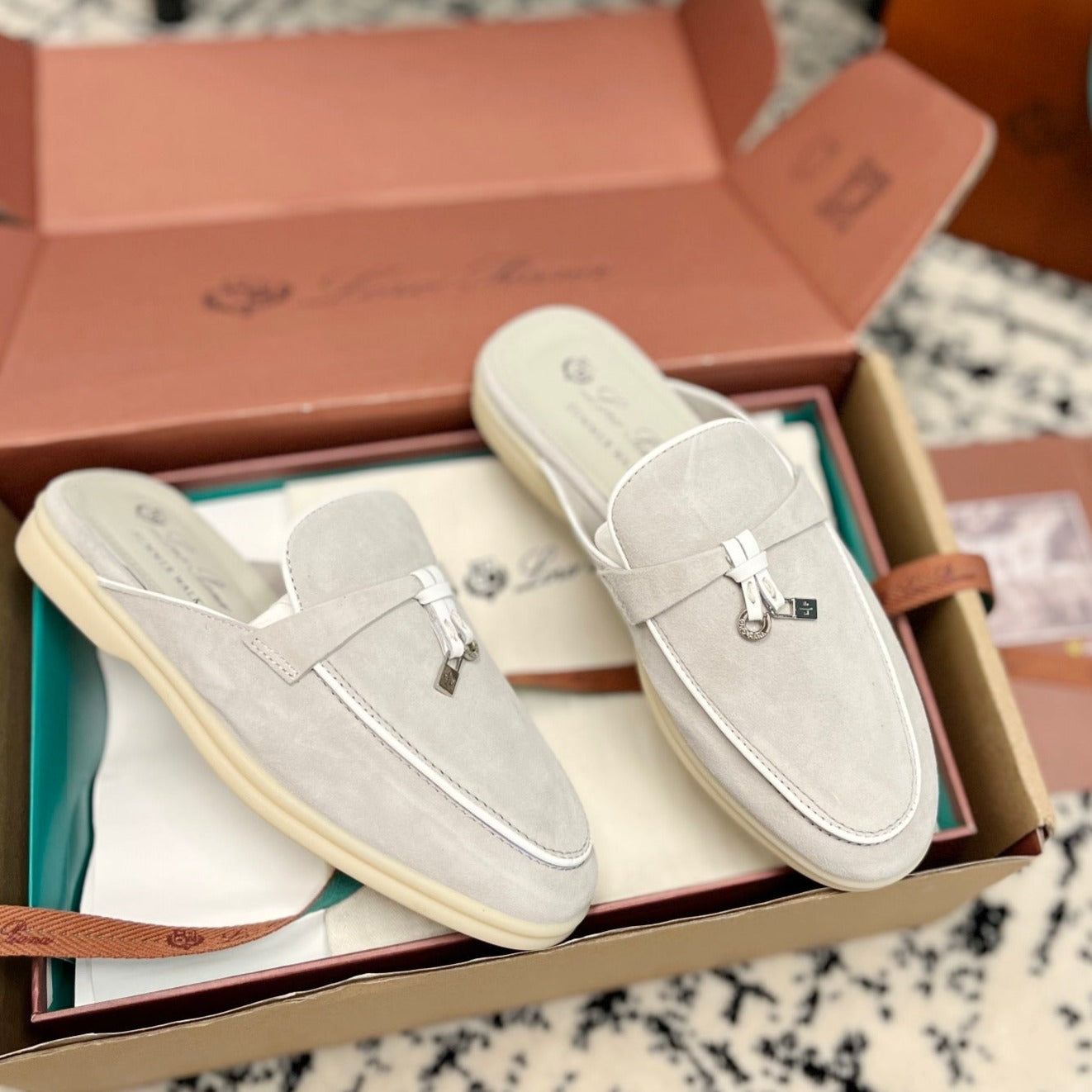 Summer Charms Mules 80 Pale Gray Suede Salmon Lambskin