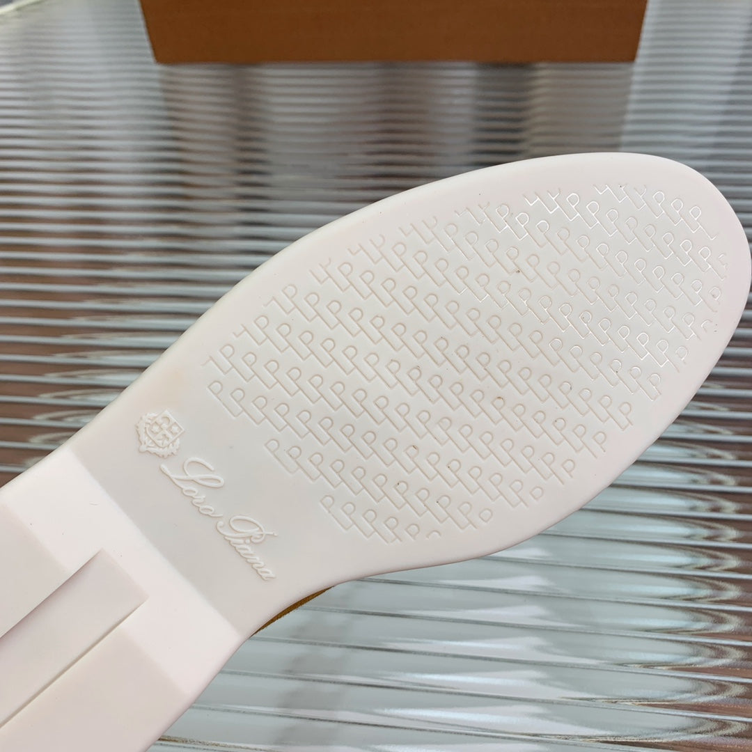 Loro Piana Beige White Suede Charms Walk Flat Mules