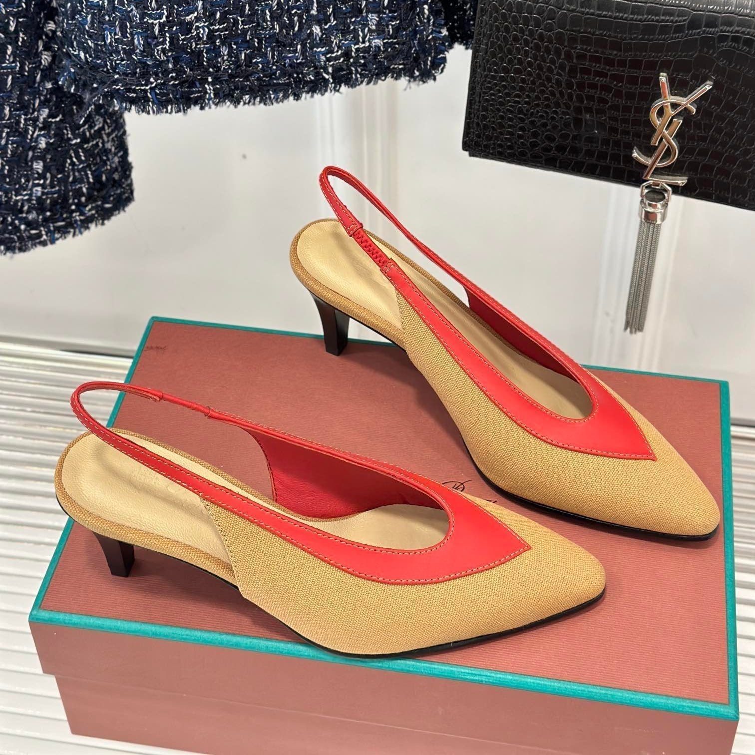 LP Rebecca Slingbacks In Mustard Brown Mix Red Cotton Fabric And Lambskin 989414