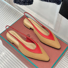 LP Rebecca Slingbacks In Mustard Brown Mix Red Cotton Fabric And Lambskin 989414