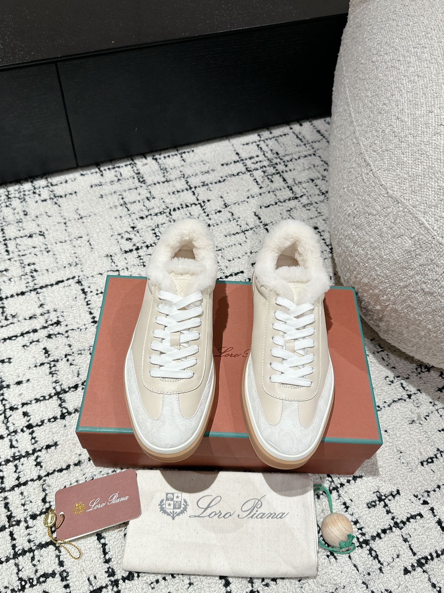 LP Tennis Walk Sneaker In Beige White Lambskin Lined With Wool Fleece 985660