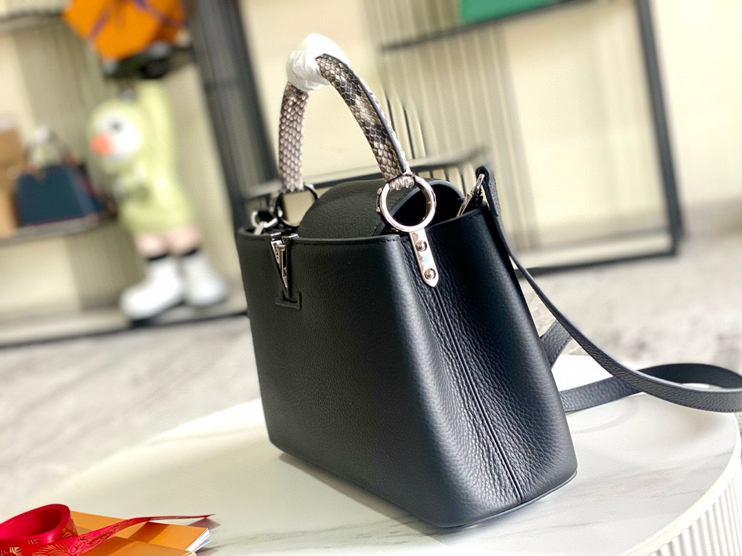 Capucines Bag Black Calfskin Leather Snake Top Handle Best Version