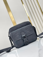 GETAWAY MESSENGER 18 IN BLACK EMBOSSED CALFSKIN
