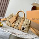 keepall bandouliere 25cm beige raffia tan calfskin