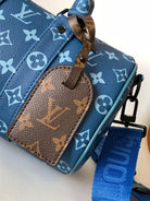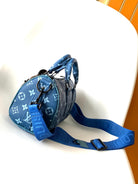 LV 21s Keepall Bandoulière 25 Blue Monogram Canvas & Cowhide