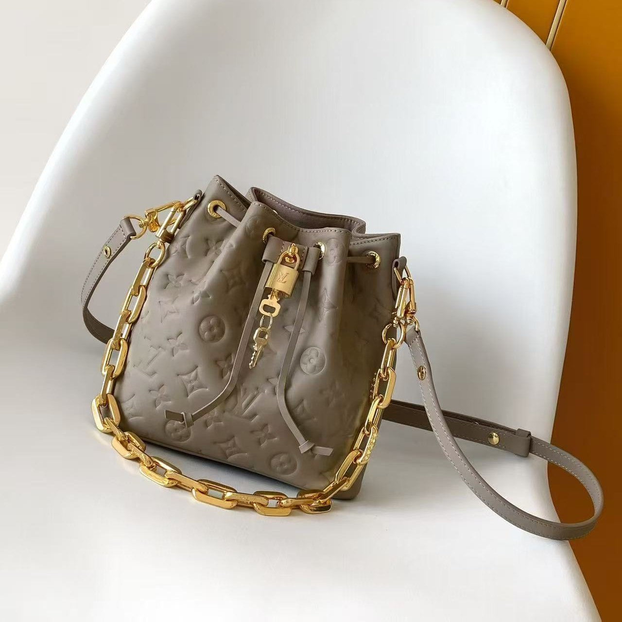 LV Coussin Bucket Bag Beige/Gray Galet Sheepskin