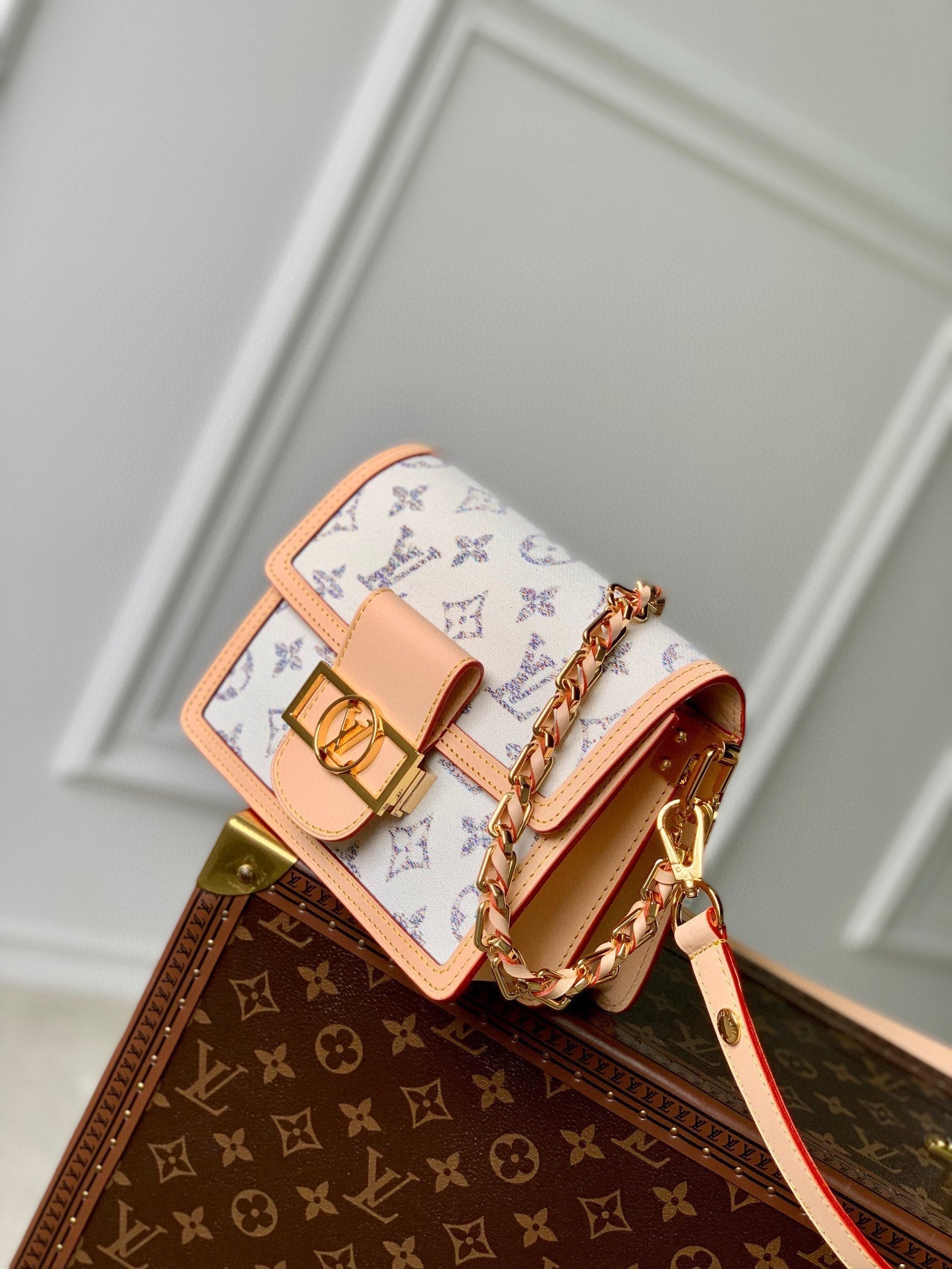 Lv Dauphine 20 Beige Leather White Monogram jacquard fabric