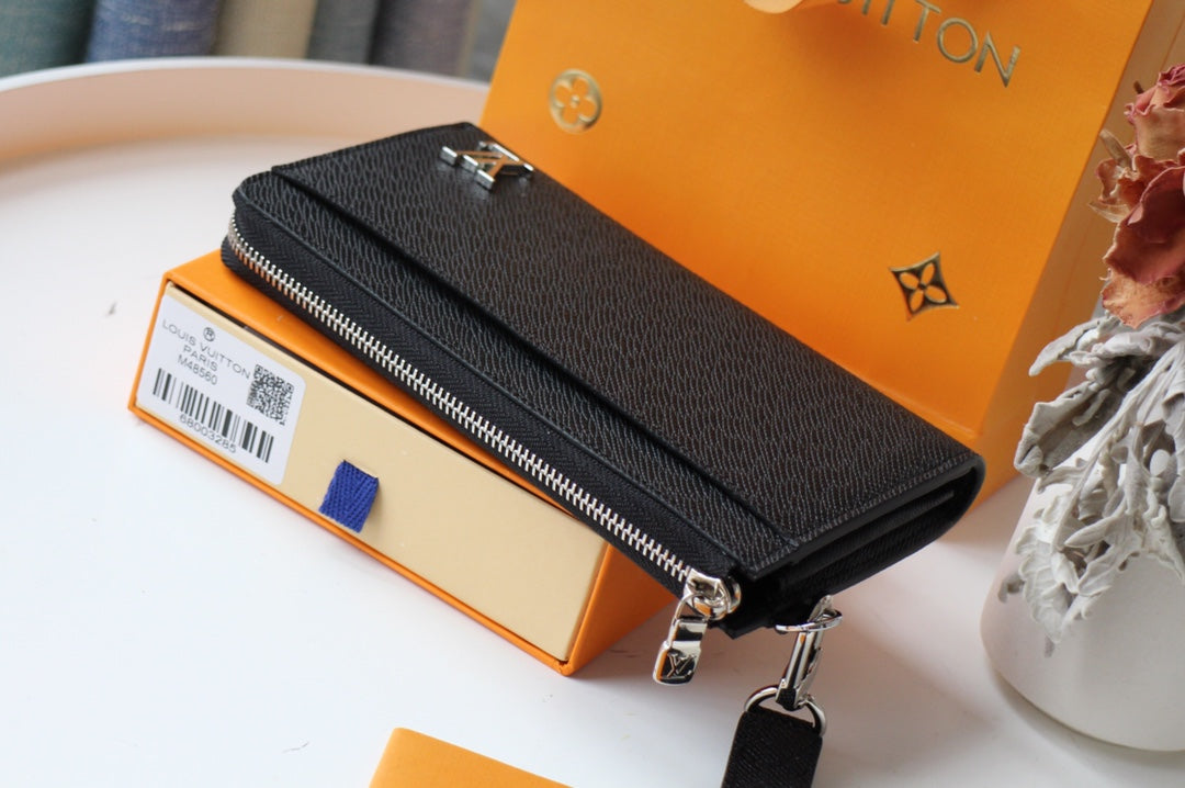 LV Dragonne Zipper Wallet Black Taiga Leather 179404