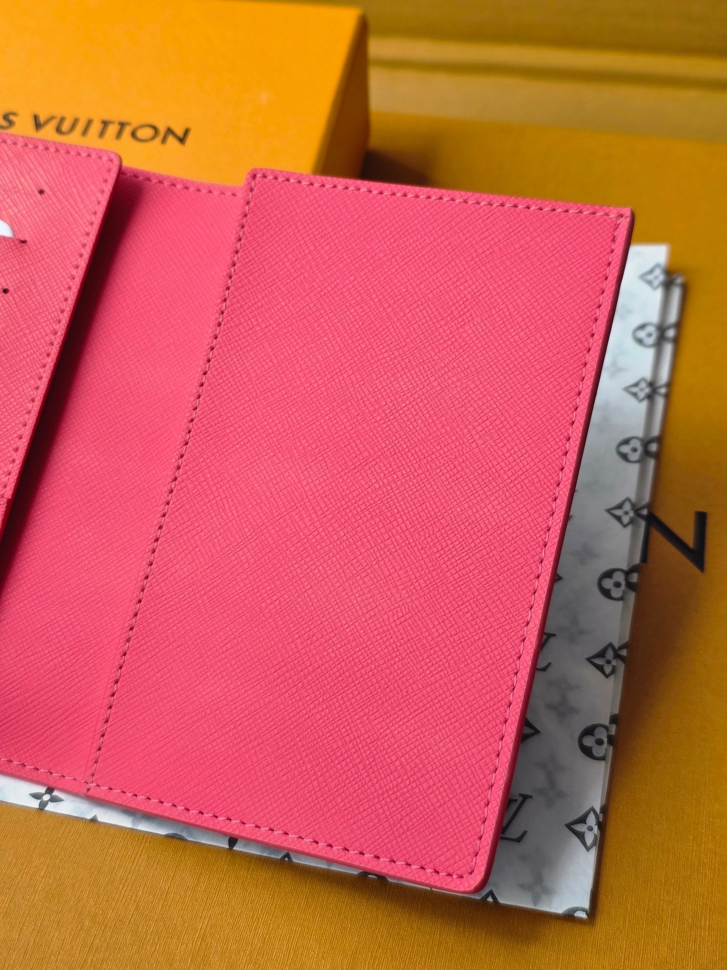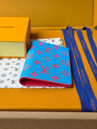 LV M14770 Passport Cover Blue Red Monogram Glow Canvas & Cowhide