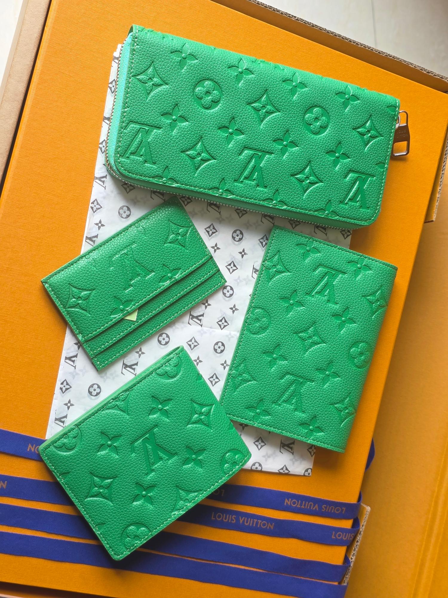 LV M25998 Double Card Holder Bamboo Green Taurillon Monogram leather
