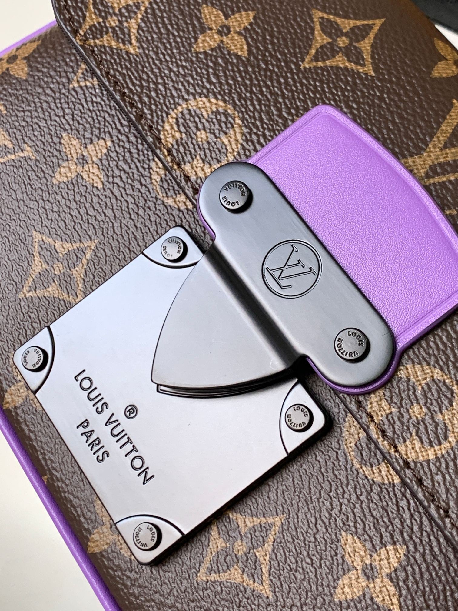 LV S Lock Sling Bag 21cm Brown Purple Monogram Macassar Canvas