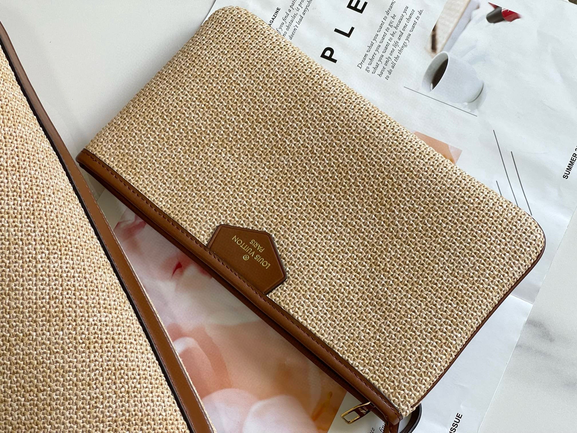 LV saint jacques 22cm tote bag basket raffia brown leather