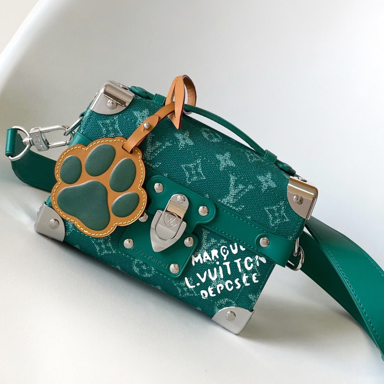 LV Soul Trunk handbag 19cm Green mix White Canvas Leather 252098