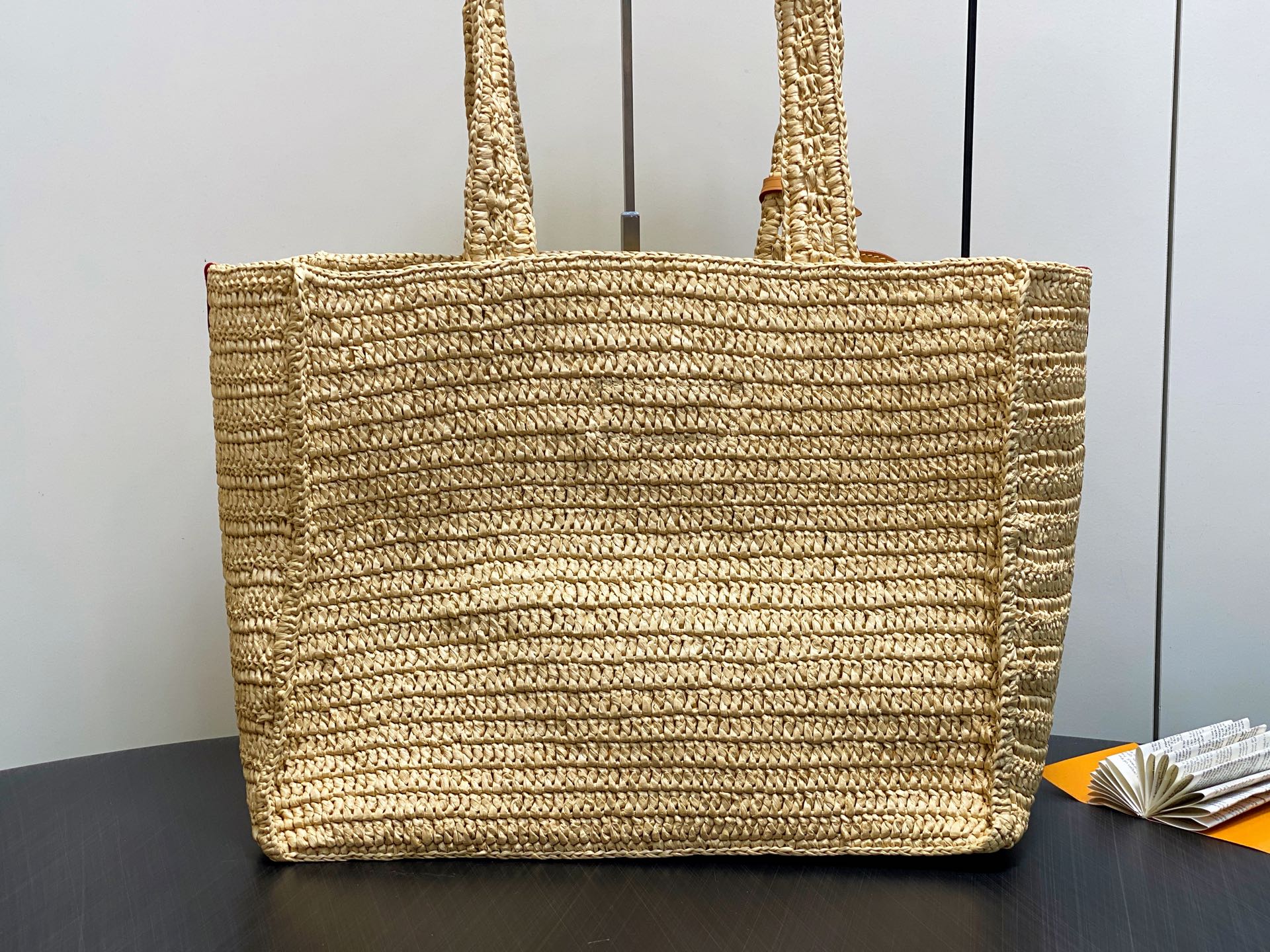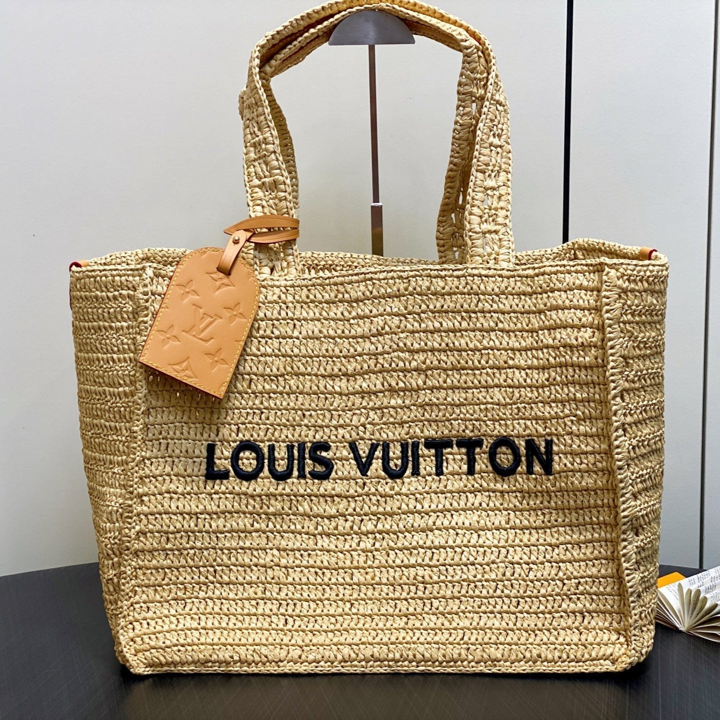 LV Summer Shopper Tote MM 44cm Beige Raffia