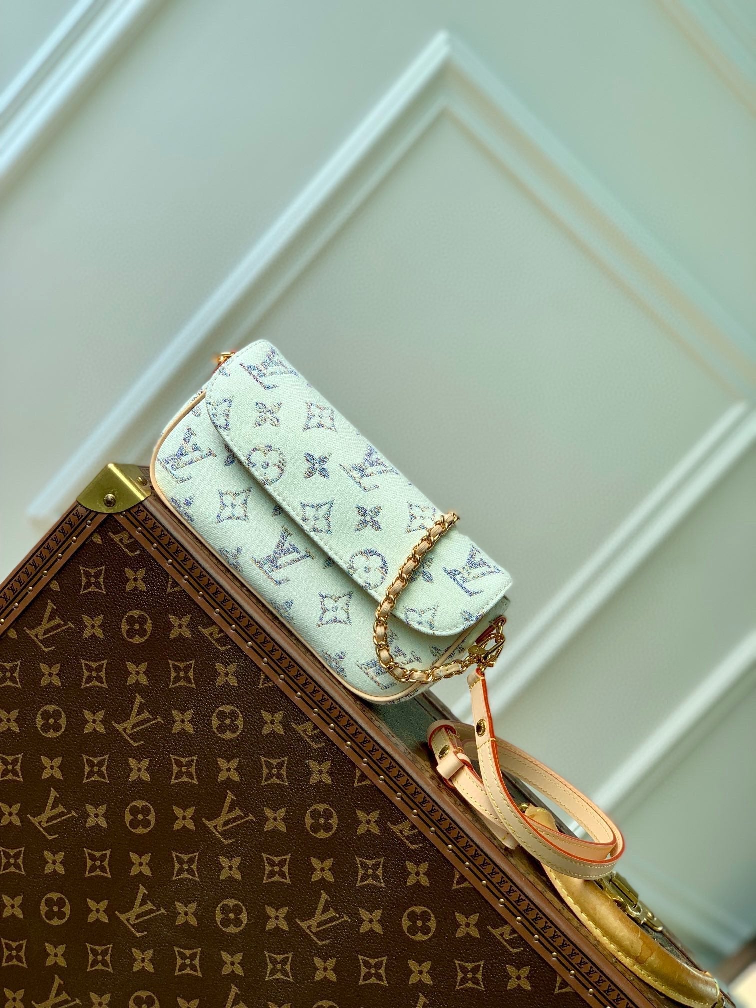 Lv Wallet on Chain Ivy 23.5 White Monogram jacquard fabric