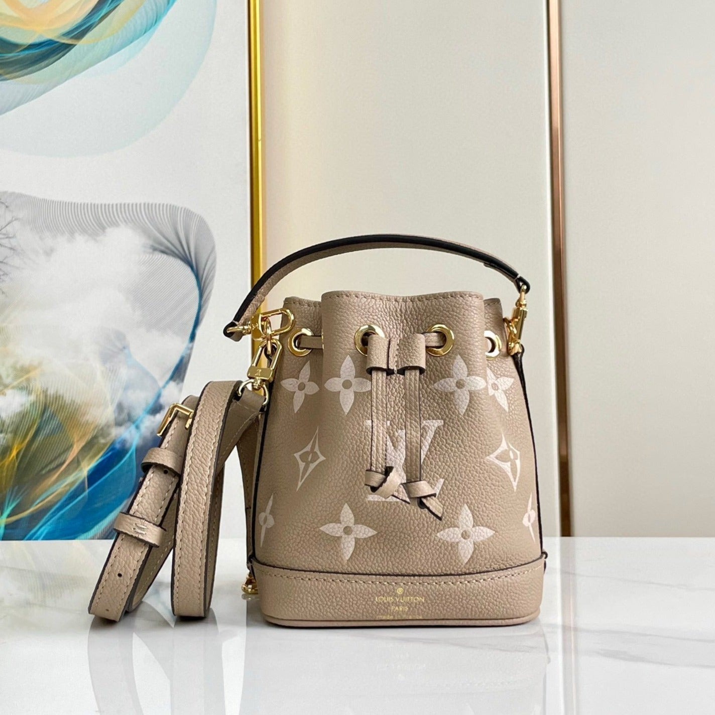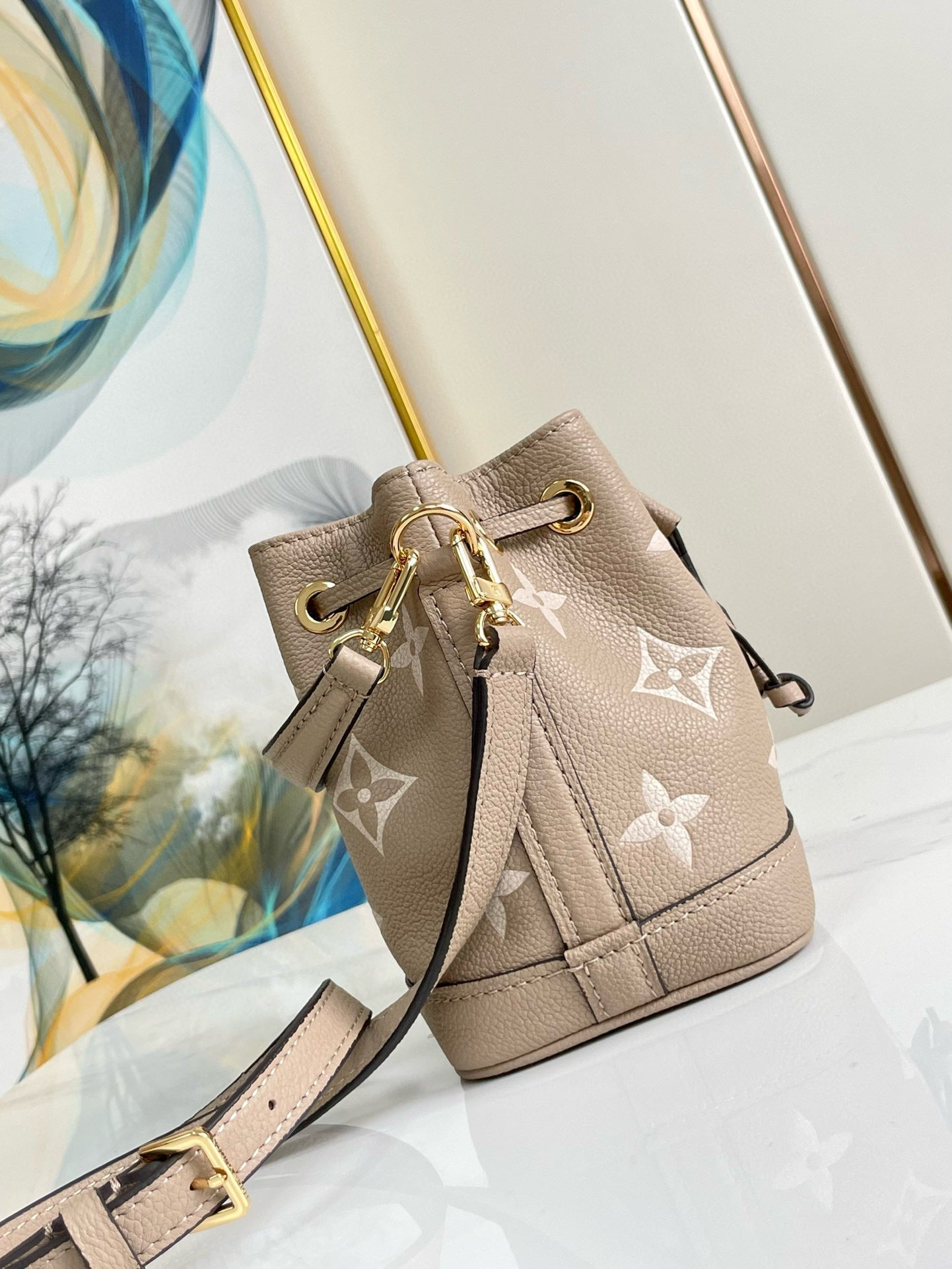 nano noe 13 grey bicolor grey monogram gold hardware